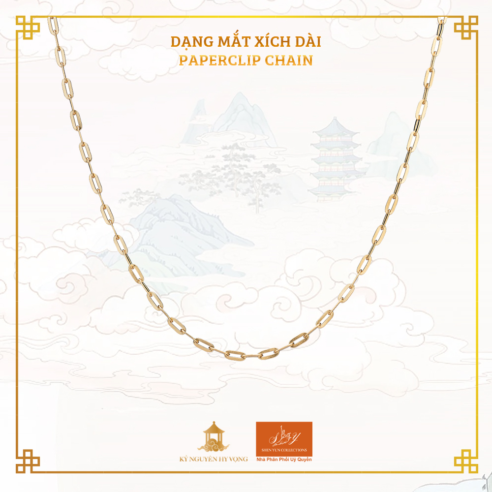 Là một trong những kiểu dây chuyền thời thượng nhất hiện nay, dây chuyền mắt xích dài có các mắt xích hình oval kéo dài, mang lại vẻ ngoài hiện đại và tinh tế.