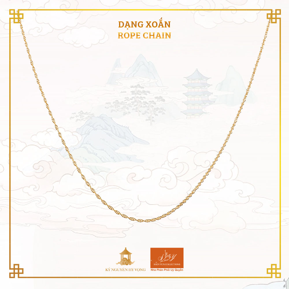 Mang thiết kế giống như một sợi dây thừng xoắn, dây chuyền này tạo ra kết cấu đặc biệt và phức tạp, phù hợp với cả mặt dây chuyền đơn giản lẫn những thiết kế trang sức tinh xảo. Mang đến sự cân bằng giữa sức mạnh và sự tinh tế.