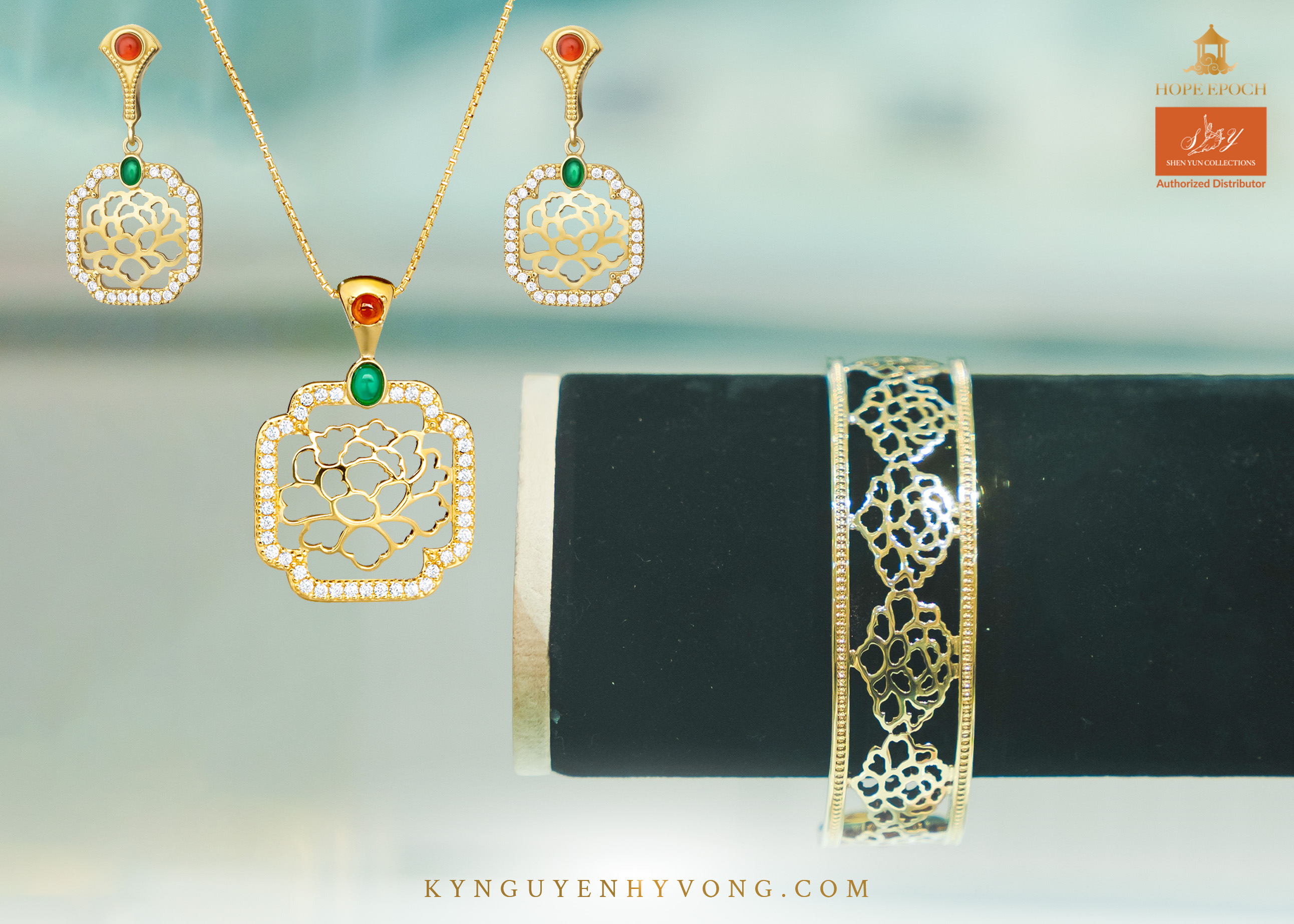 Cuối cùng, hãy giữ hình ảnh hoa mẫu đơn thịnh vượng luôn ở bên bạn với Bộ sưu tập ‘Trang sức Hoa nhà Đường’ của chúng tôi. Những viên đá rực rỡ và màu sắc sống động trong bộ trang sức sẽ cho phép “Nữ hoàng của các loài hoa” đến từ triều đại nhà Đường làm nên một vẻ đẹp toả sảng ở bạn trong bất kỳ hoàn cảnh, hay dịp lễ đặc biệt nào.