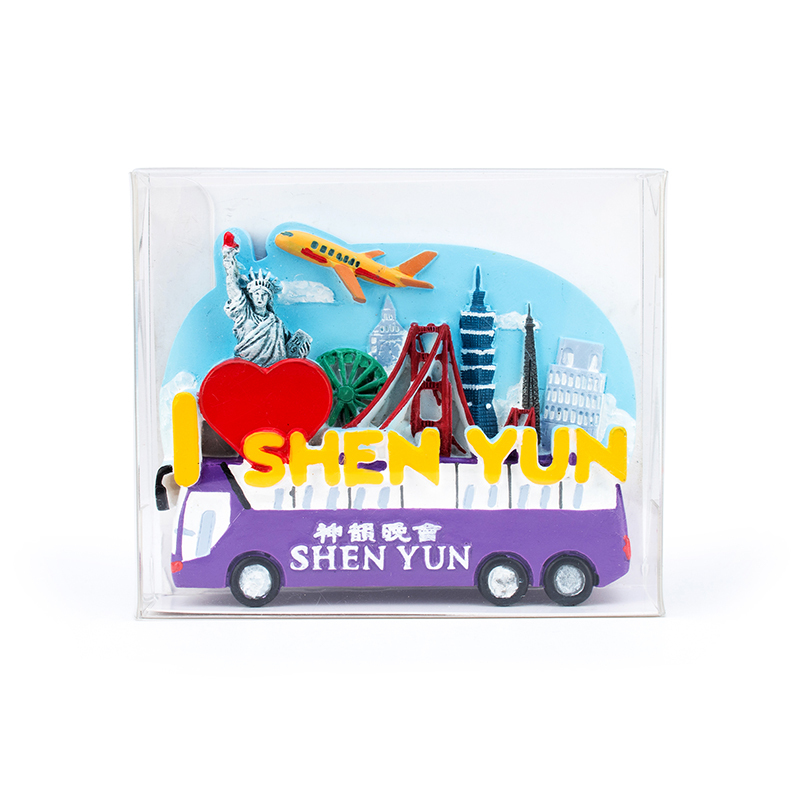 Những chiếc xe buýt lưu diễn rực rỡ, nổi bật của Shen Yun luôn không ngừng nghỉ di chuyển qua các thành phố biểu diễn, đồng hành cùng các nghệ sĩ đưa nghệ thuật truyền thống thuần thiện, thuần mỹ của 5.000 năm văn hóa thần truyền Trung Hoa lên sân khấu thế giới. Chiếc nam châm 3D tinh xảo này đưa hình ảnh xe buýt Shen Yun đầy màu sắc vào thiết kế, mong mang đến nguồn cảm hứng mới cho cuộc sống của bạn.