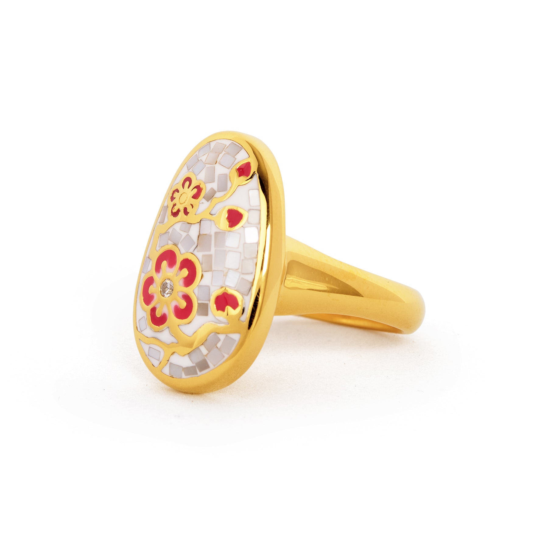 Nhẫn Plum Blossom Mosaic Mother of Pearl Ring Gold Size 9